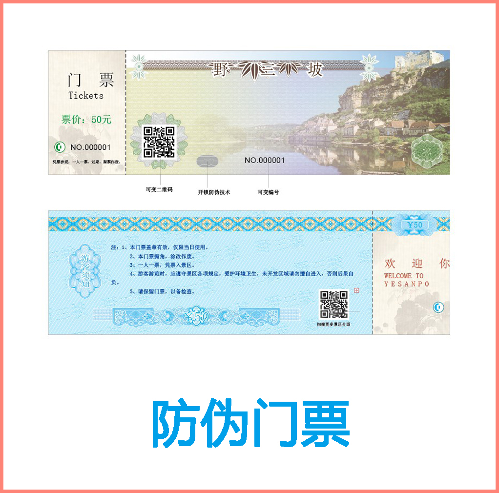 門票行業越來越猖獗,像一些價格比較高的門票,比方,大型文藝演唱會、體育比賽、、覽會以及旅游景點門票,都呈現過偽鈔疑問,不法分子會經過制作偽鈔來獲取暴利。因而,為了保護主辦者和消費者的合法利益,保護精力和文化領域內的市場秩序,門票的防偽有必要選用難于仿制的高科技防偽技術。